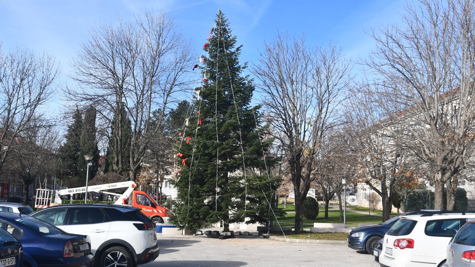 Središte Posušja ovih dana polako poprima svoj prepoznatljivi blagdanski izgled. Trg hrvatskih branitelja, koji svake zime postaje srce lokalnog druženja, jutros je odisao pravom božićnom atmosferom. Radnici i volonteri marljivo uređuju prostor, a posebno je lijepo vidjeti kako je započelo ukrašavanje velikog božićnog drvca. Grane se pažljivo kite lampicama i ukrasima, a svaki novi detalj unosi još malo topline i radosti u hladne prosinačke dane.