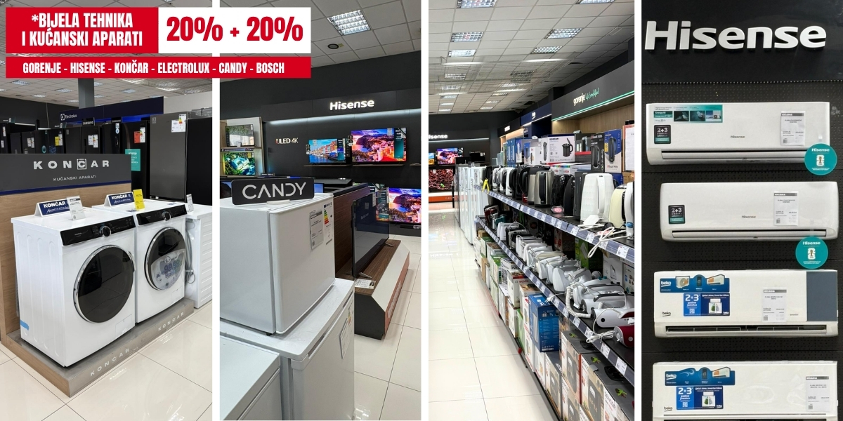Bijela tehnika – 20% + 20% popusta na brendove: Gorenje, Hisense, Končar, Electrolux, Candy i Bosch.